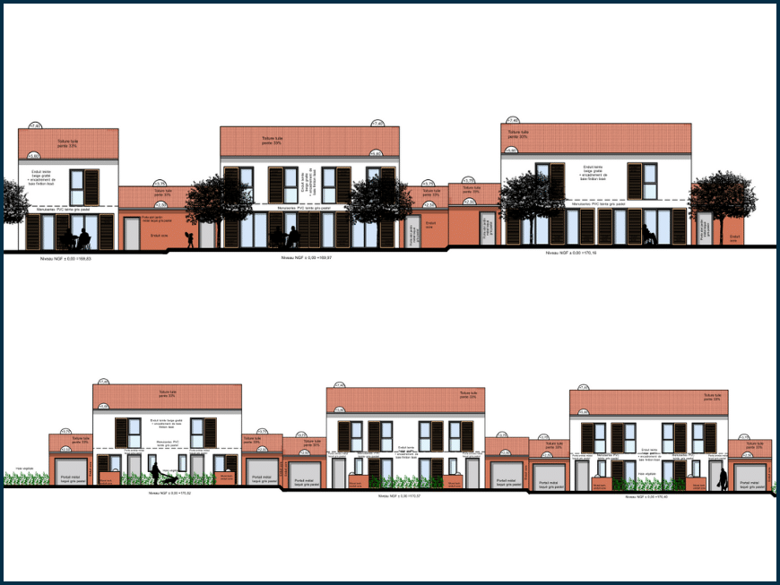 Dans ce cadre, nous intervenons en tant que contractant général pour la construction de 11 villas individuelles avec garage, regroupées sous le nom Les Jardins de Puech Armand, situées au 13-33 allée des Acacias, à Castelnau-de-Lévis.